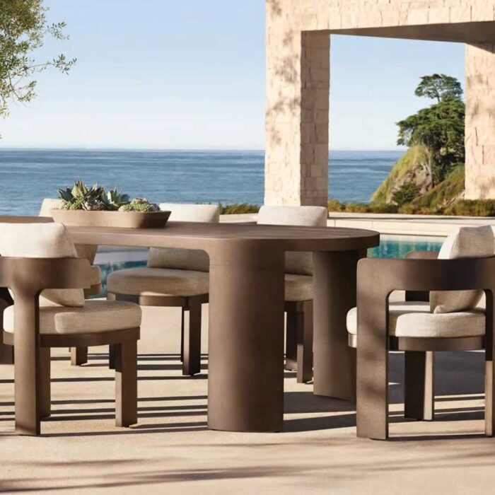 Set dining din aluminiu, masă și scaune cu design arhitectural, model Orion Alto, bronz mat