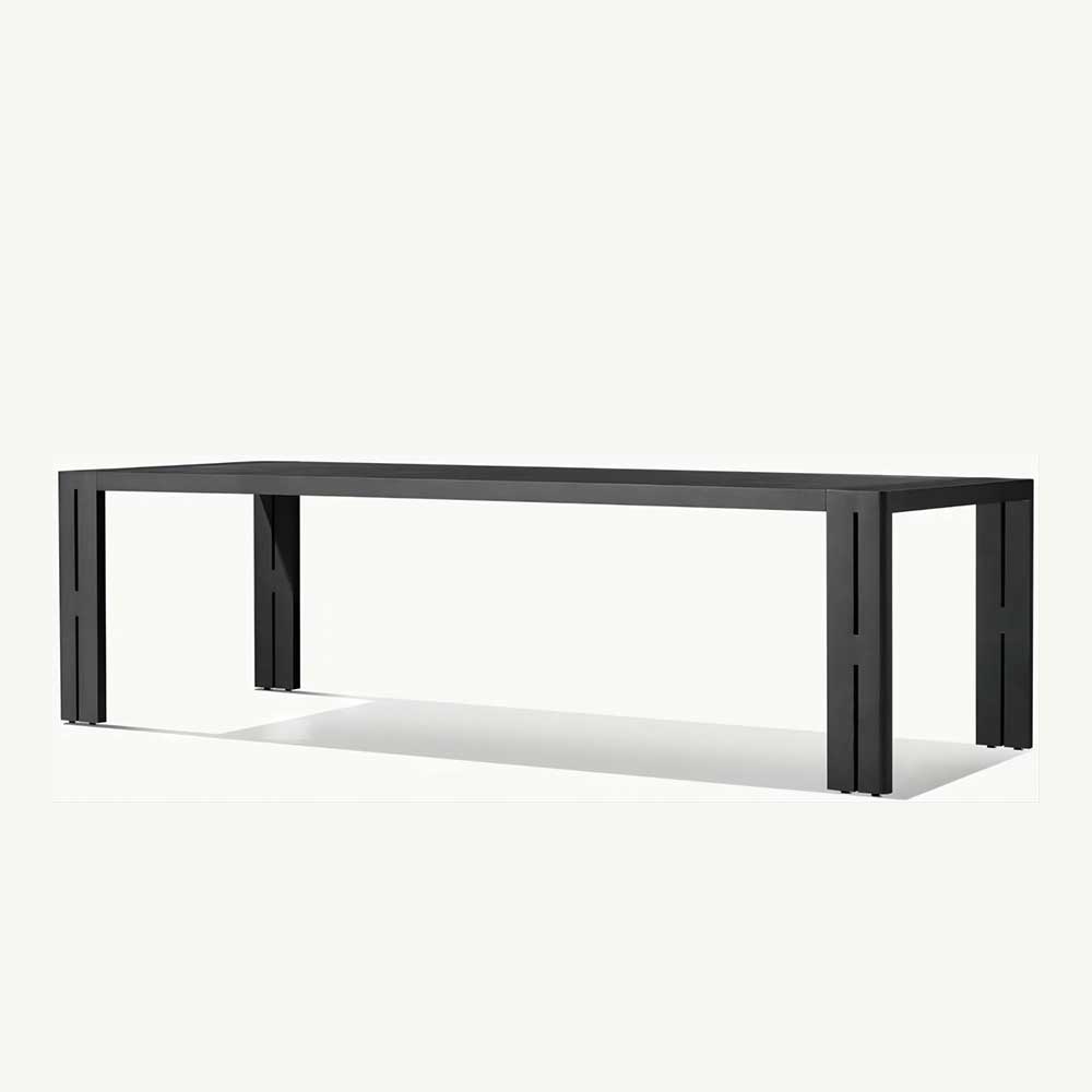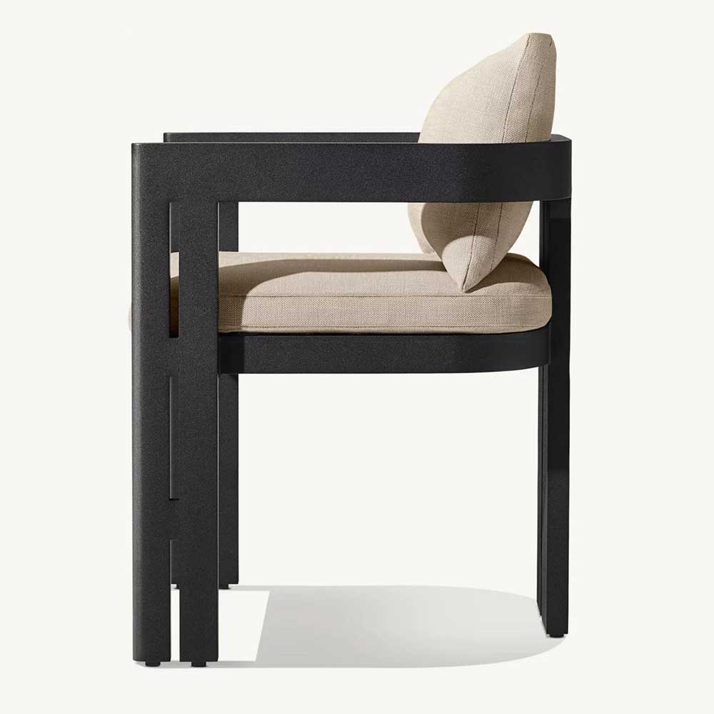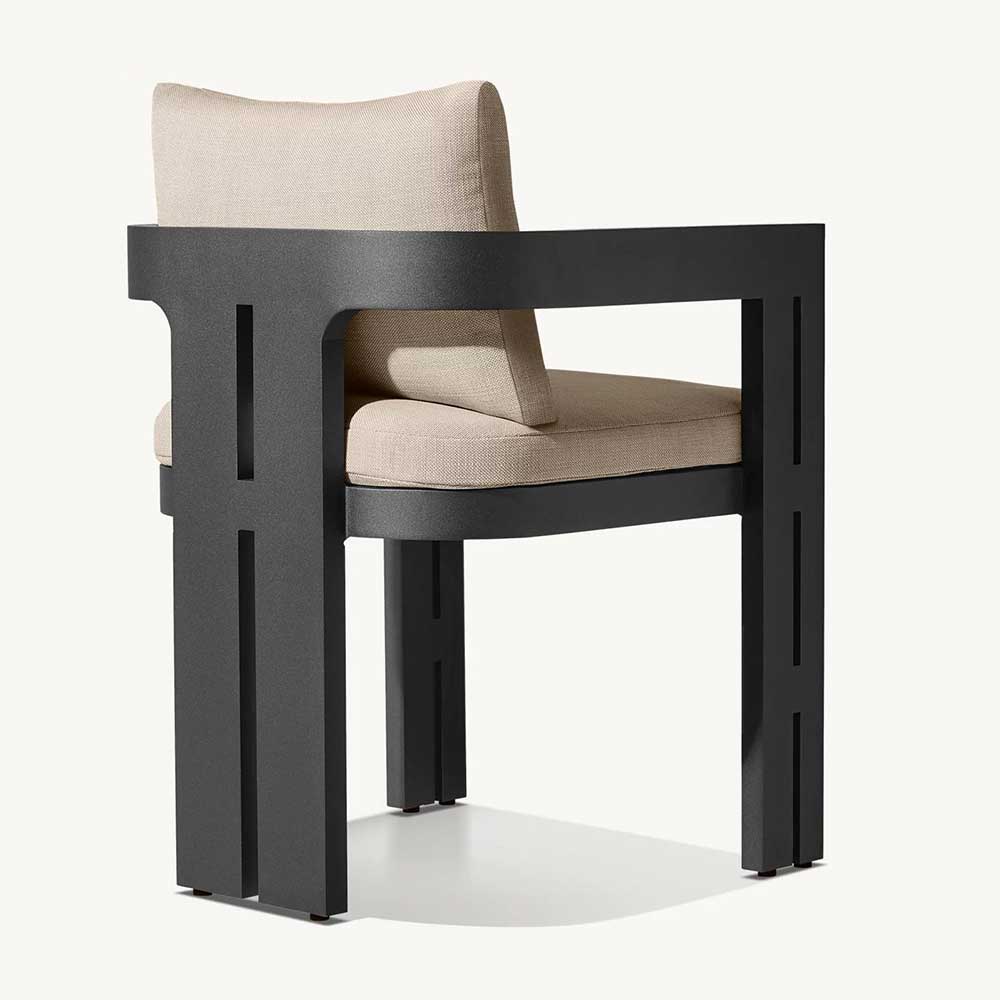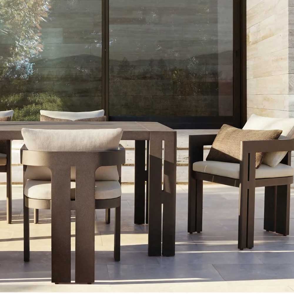Construcția din aluminiu vopsit electrostatic oferă rezistență totală la intemperii, fiind ideal pentru utilizare pe tot parcursul anului. Scaunele cu spătar semi-curbat și perne groase completează perfect designul, oferind un echilibru între duritate vizuală și confort practic.