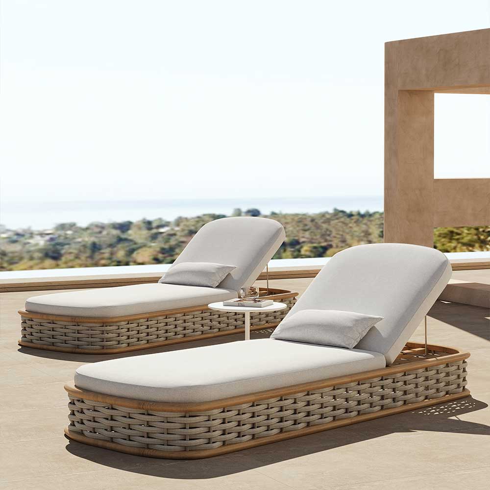 Modelul Toscana îmbină estetica rafinată a lemnului de tec cu textura naturală a ratanului sintetic, rezultând un șezlong elegant și rezistent.